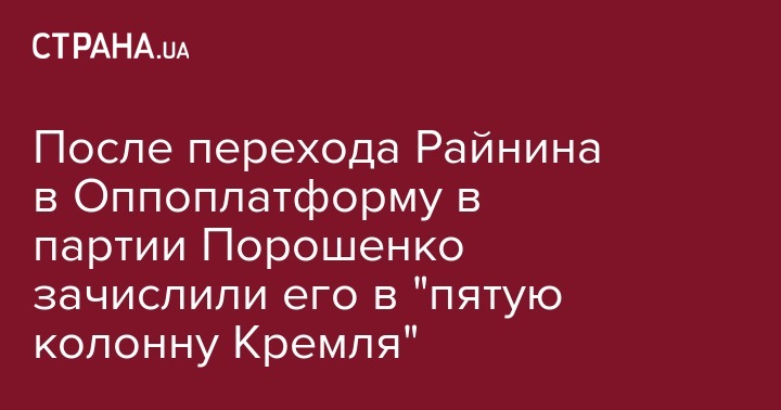 После перехода Райнина в Оппоплатформу в партии Порошенко зачислили его в "пятую колонну Кремля"