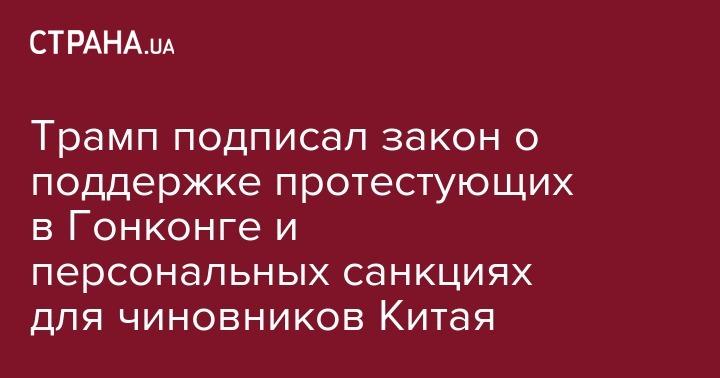 Президент США Дональд Трамп дал зеленый свет закону о поддержке протестующих в Гонконге и о введении персональных санкций против ряда чиновников Гонконга и Китая.