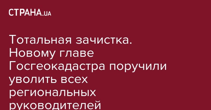 Кабинет министров поручил недавно назначенному руководителю Госгеокадастра Денису Башлыку "отстранить всех руководителей и заместителей руководителей региональных отделений от работы". Об этом сообщил министр экономики Тимофей Милованов на своей странице в Facebook.