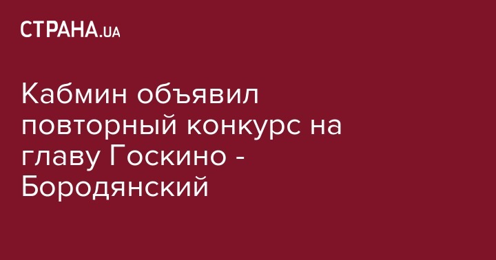 Кабмин объявил повторный конкурс на главу Государственного агентства по вопросам кино, сообщил министр культуры, молодежи и спорта Украины Владимир Бородянский. Об этом он заявил на пресс-конференции на тему: "Презентация результатов анализа эффективности государственной поддержки кинематографии" в пятницу в Киеве, пишет Интерфакс-Украина.