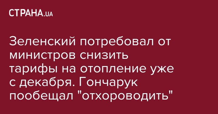 Зеленский потребовал от министров снизить тарифы на отопление уже с декабря. Гончарук пообещал "отхороводить"