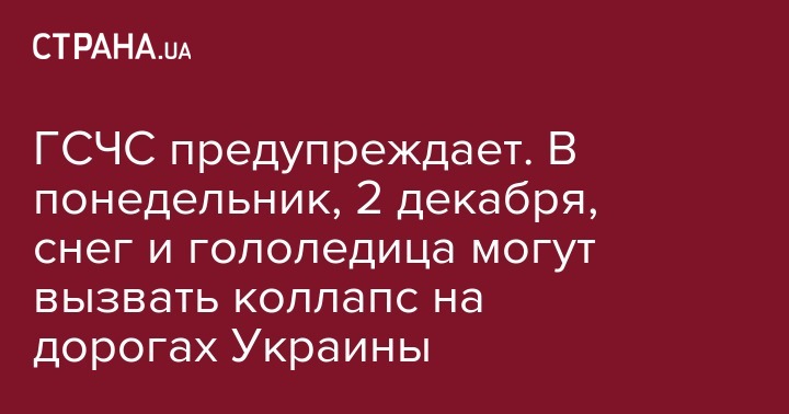 Служба ссылается на данные Украинского гидрометцентра, согласно которым днем ​​2 декабря и 3 декабря в Украине ожидается снег, в том числе мокрый, и возможно образование снежного покрова высотой 3-8 см. Осадки вероятны 2 декабря в западных, а также Винницкой и Житомирской областях, а 3 декабря - по всей Украине, кроме южных областей.