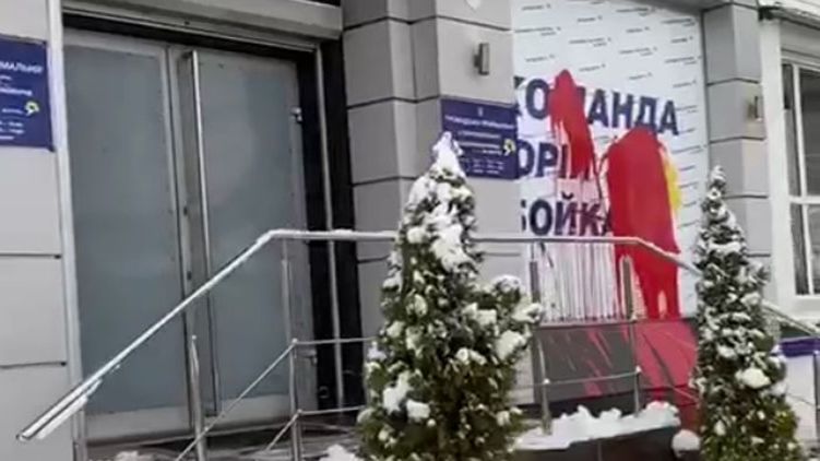 В Харькове вандалы облили краской и прикрепили гранату к офису Оппозиционной платформы За жизнь, фото: vecherniy.kharkov.ua