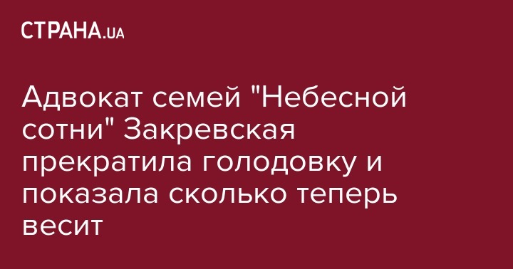 Адвокат семей "Небесной сотни" Закревская прекратила голодовку и показала сколько теперь весит