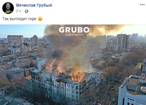 Так выглядит горе - опубликовал фото горящего здания Вячеслав Грубый.