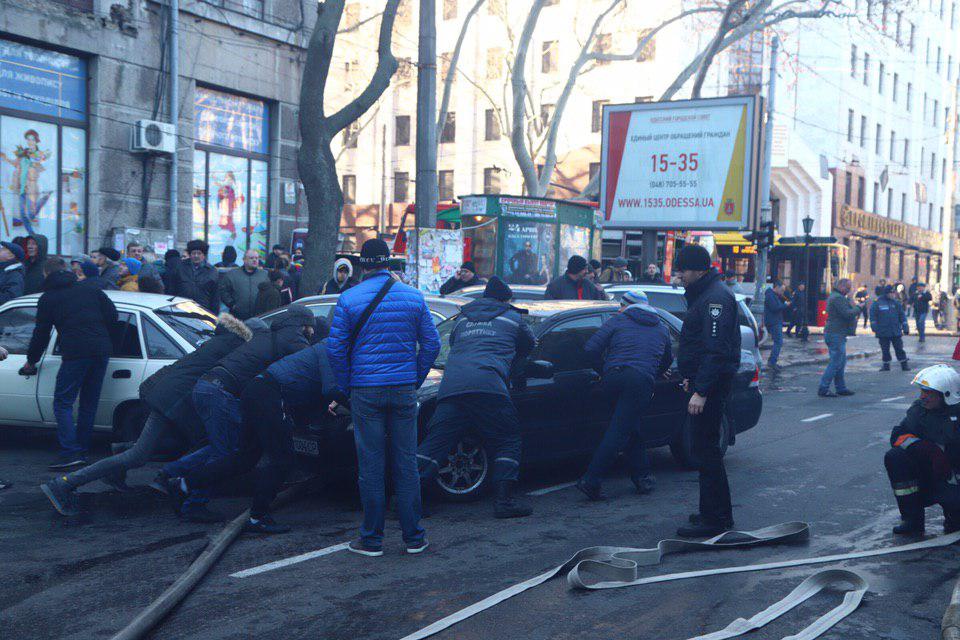 По состоянию на 11:00 на месте было очень много скорых, они забирали пострадавших. Мэрия Одессы отложила заседание исполкома. Мэр Геннадий Труханов приехал на место происшествия.