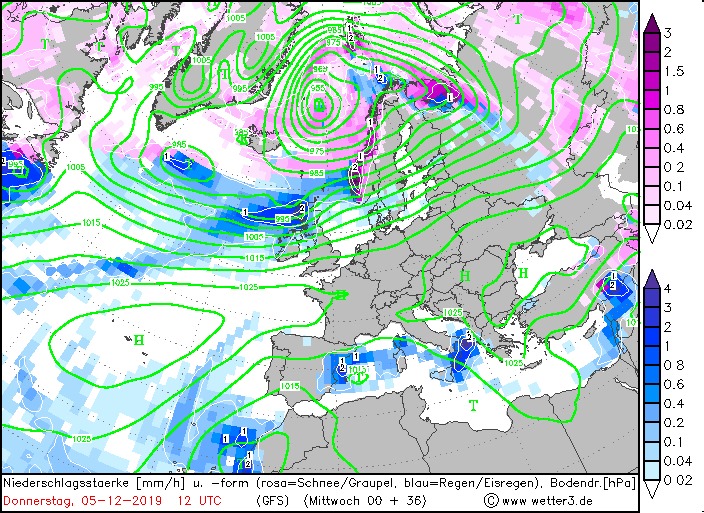 "На севере Европы – дожди, снега и сильный ветер, на крайнем юге – периодические дожди и ливни, а большинство континентальной Европы принадлежит антициклональной полосе высокого атмосферного давления. Карта 2", – рассказала Диденко.