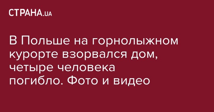 На горнолыжном курорте Щирк, Польша, вечером 4 декабря произошел взрыв газа в жилом доме, при котором погибло 4 человека и еще восьмерых ищут спасатели. Об этом сообщает PolskieRadio24.