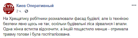 В Киеве на Крещатике на прохожих обрушились строительные леса, есть пострадавшие. Фото