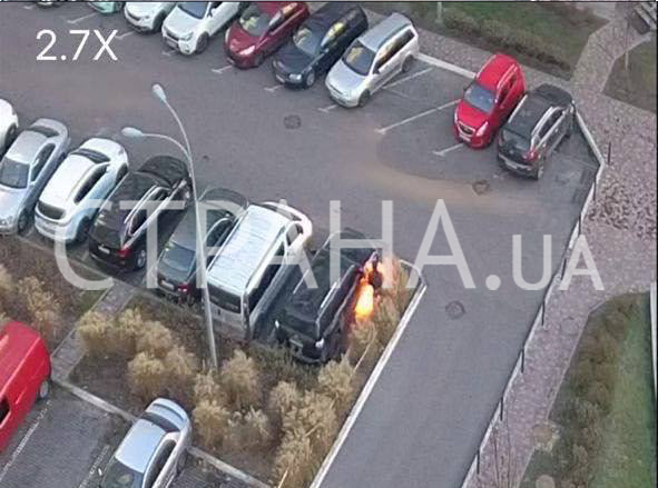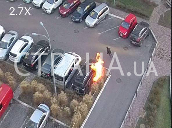 Появились фото момента дерзкого поджога машины в Киеве среди белого дня