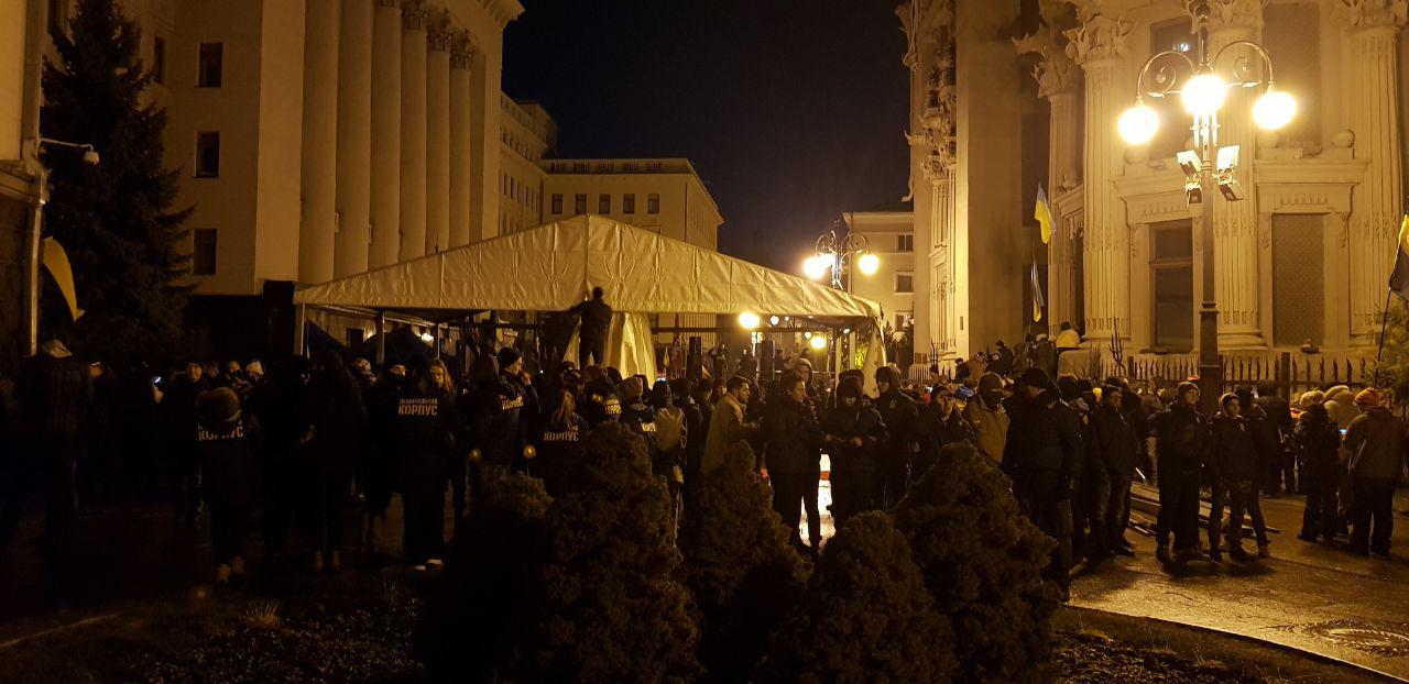 На улице Банковой под Офисом президента, где проходит акция протеста накануне нормандской встречи, Нацкорпус выстроил целый дом. Об этом сообщает корреспондент "Страны".