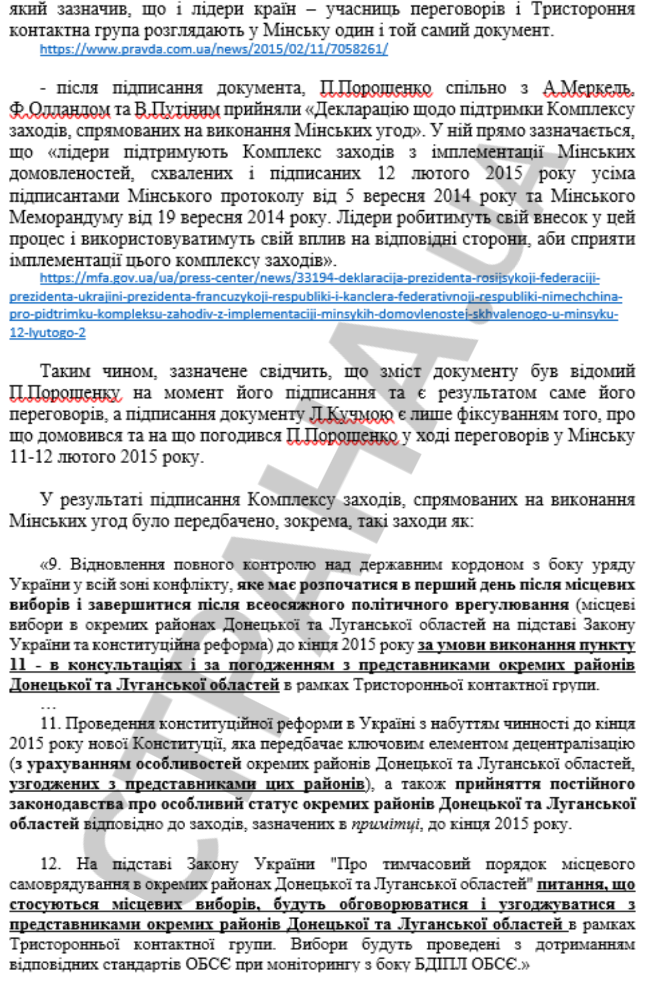 Портнов считает этот факт госизменой Порошенко. Он также указывает, что экс-президент знал о содержании документа и уполномочил его подписать своего представителя Леонида Кучму.