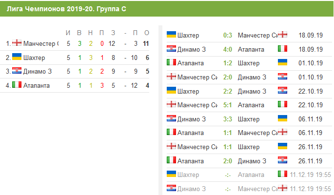 Теперь рассмотрим самый нежелательный вариант, если Шахтер проиграет Аталанте. В этом случае о Лиге чемпионов сразу забываем, но есть шанс зацепиться за Лигу Европы. Это произойдет в том случае, если Динамо Загреб уступит Манчестер Сити или же сыграет с ним вничью. В последнем варианте у Донецка и Загреба будет по 6 очков, но преимущество по личным встречам на стороне Шахтера.