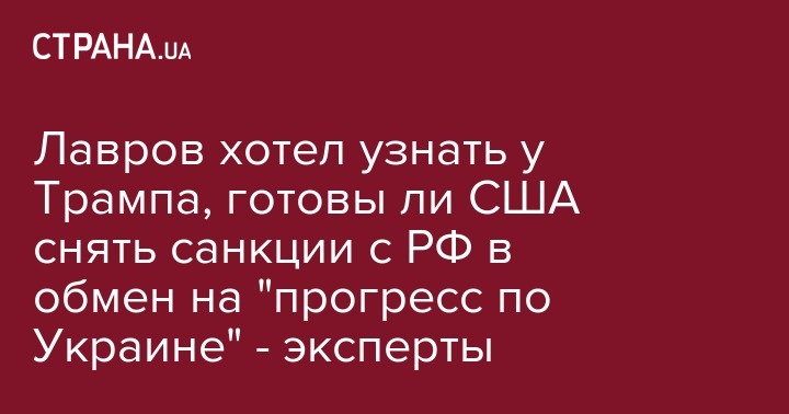 В свою очередь, Марк Симаковский, эксперт Атлантичекого совета убежден, что главной целью визита Сергея Лаврова в Вашингтон было убедиться, готов ли Трамп смягчить санкции "в обмен на прогресс по Украине".