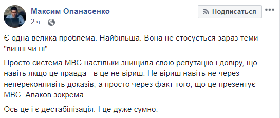 Просто система МВД настолько уничтожила свою репутацию и доверие, что даже если это правда – в это не веришь. Не веришь даже не из-за неубедительных доказательств, а просто из-за факта того, что это представляет МВД. Аваков в частности.