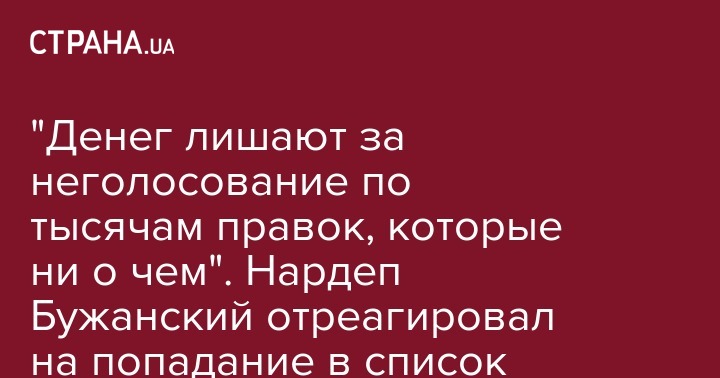 "У меня ни одного пропущенного заседания парламента. Это очень легко посмотреть, достаточно зайти на сайт ВР. Депутатских денег лишают за неголосование, за каждую из тысячи правок, которая вообще ни о чем. Прогулов у меня нет", - заявил "Стране" Бужанский.