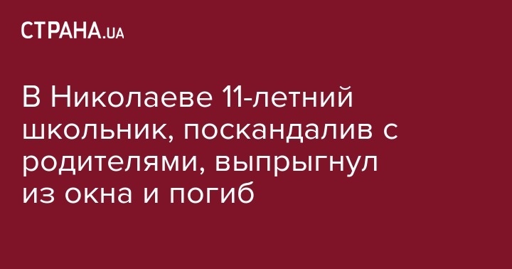 Вчера, 13 декабря, в Корабельном районе Николаева, в доме по улице Айвазовского, 11-летний ребенок выбросился из окна с 9 этажа, поскольку отказывался делать уроки.