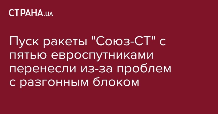 Пуск ракеты "Союз-СТ" с пятью евроспутниками перенесли из-за проблем с разгонным блоком