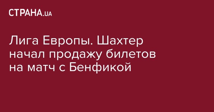 Лига Европы. Шахтер начал продажу билетов на матч с Бенфикой
