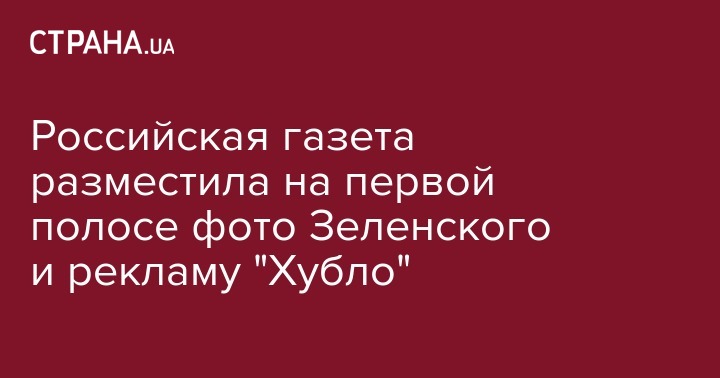 Российская газета разместила на первой полосе фото Зеленского и рекламу "Хубло"