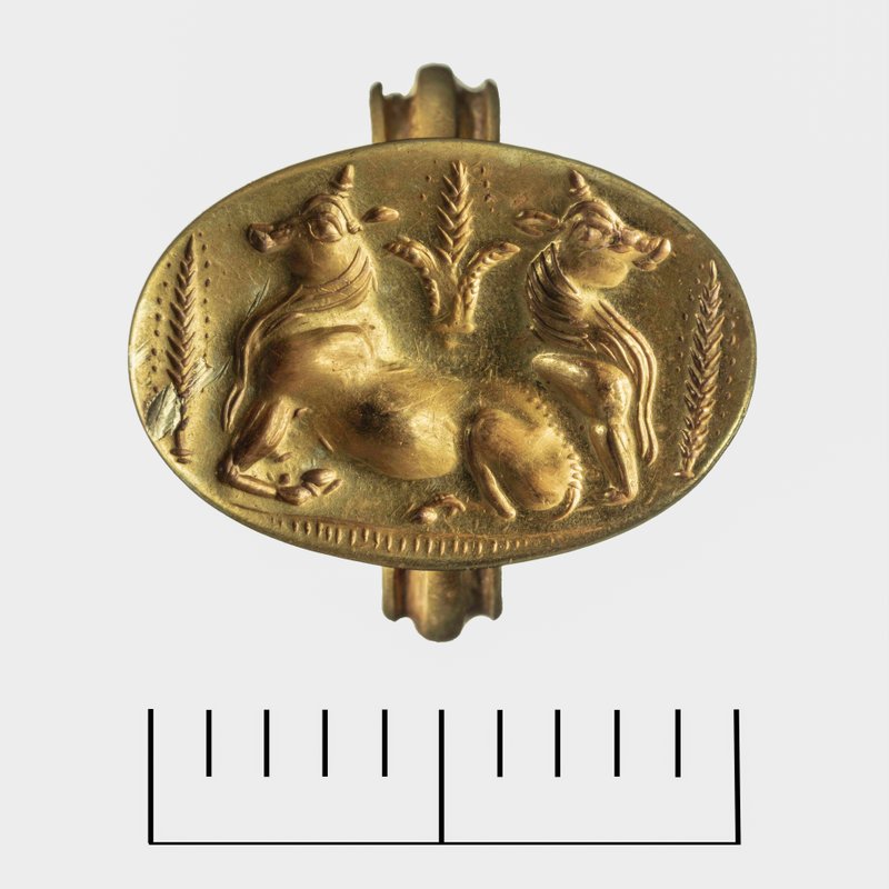 Уточняется, что в гробницах были найдены золотое кольцо с печатью и амулет с изображением древнеегипетской богини Хатор, что свидетельствует о торговых и культурных связях Греции с Египтом.