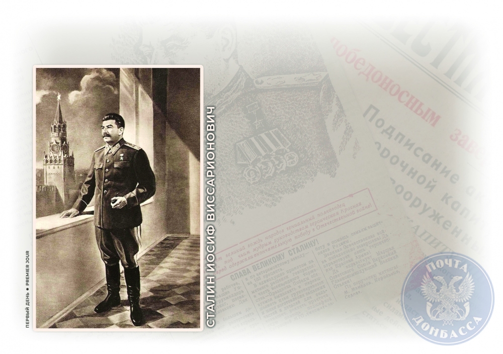 Выпуском марки "Почта Донбасса" открыла филателистическую серию "Великие люди". На марке изображен парадный портрет Сталина. Она вышла тиражом 16 тыс. экземпляров и номиналом 39 рублей. На конверте Сталин изображен во весь рост на фоне московского Кремля. Конвертов выпущено 1200 штук.