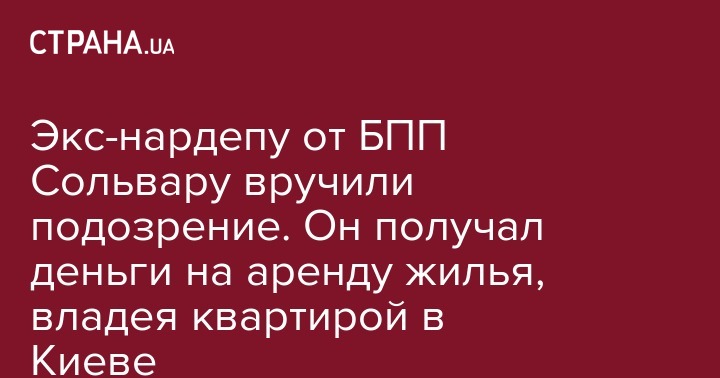 Экс-нардепу от БПП Сольвару вручили подозрение. Он получал деньги на аренду жилья, владея квартирой в Киеве