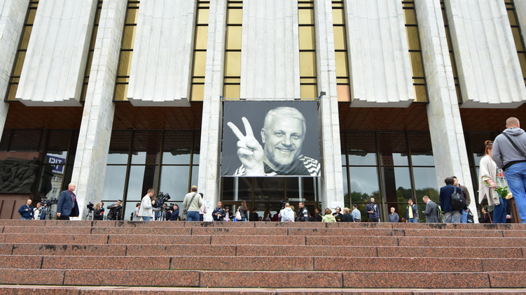 Сегодня в Киеве прощаются с журналистом Павлом Шереметом. Церемония проходит в "Украинском доме". В зале стоит микрофон, перед которым может выступить любой из пришедших проститься с журналистом.