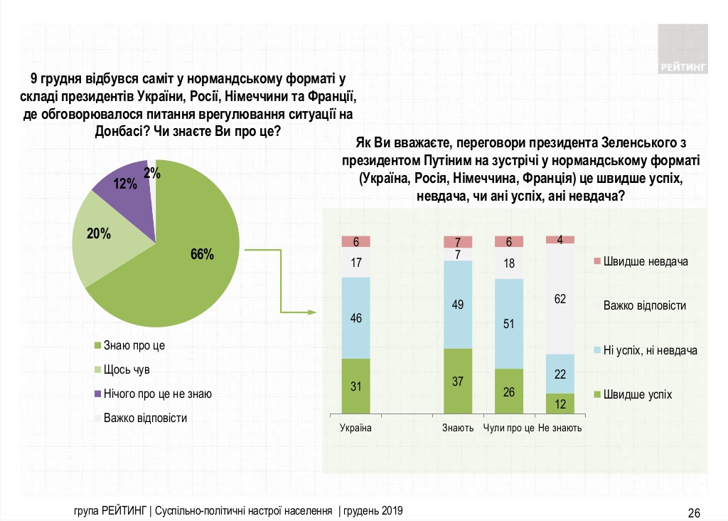 Как уже говорилось – Нормандский саммит стал ключевым фактором роста рейтинга президента. Об этом говорят и данные исследования "Рейтинга".