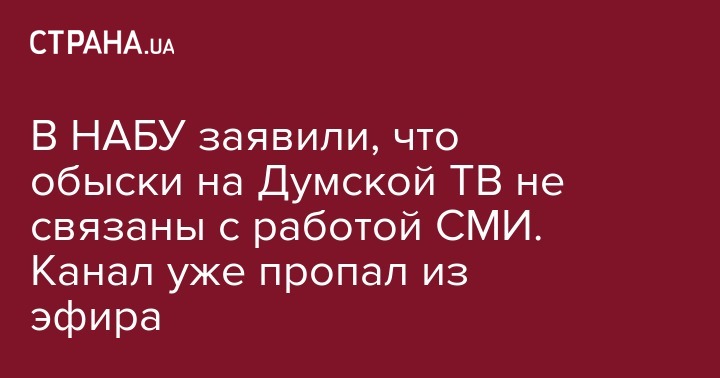 В НАБУ заявили, что обыски на Думской ТВ не связаны с работой СМИ. Канал уже пропал из эфира