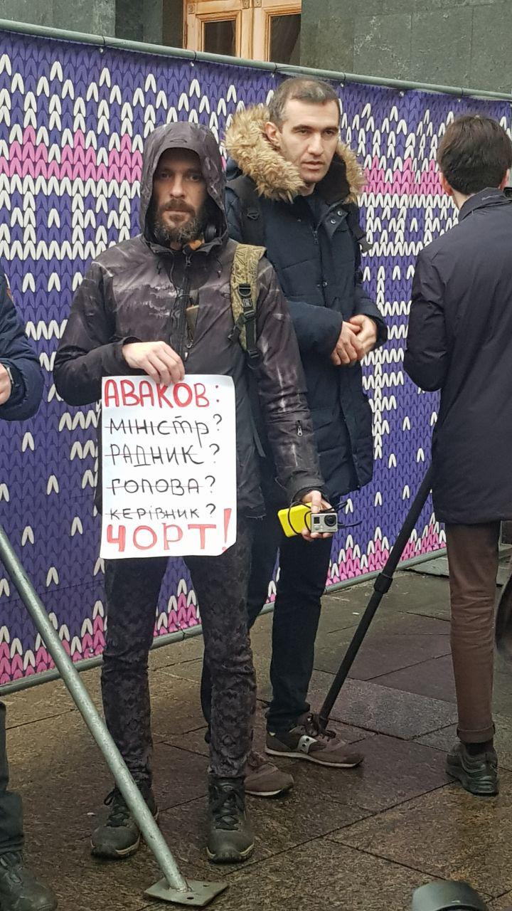 В ходе акции митингующие провели небольшой перформанс: "отделили" на плакате Авакова от Зе, заявив, что "мусору место в урне".