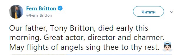 "Наш отец Тони Бриттон умер ранним утром. Он был отличным актером, режиссером и обаятельным человеком", - написала она.