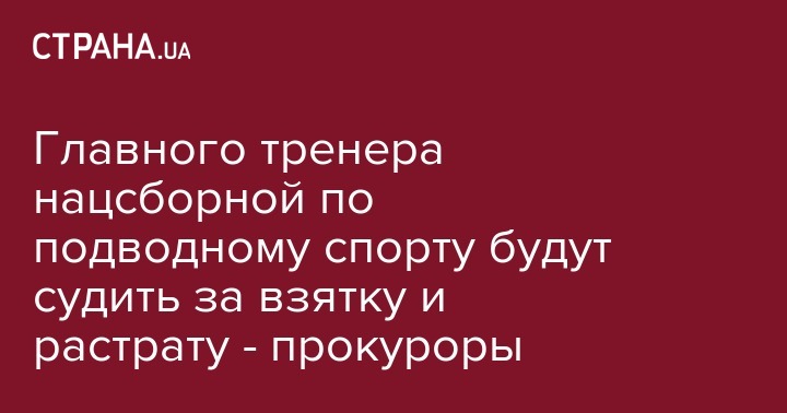 Тренера национальной сборной по подводному спорту и подводной деятельности, которую задержали в июне этого года, будут судить за получение взятки и растрату средств. Об этом сообщает прокуратура Киева в Facebook.