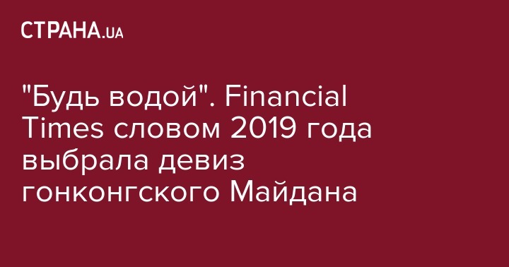 Влиятельная газета Financial Times выбрала слово года. Им стало выражение Be water (с английского - Будь водой). Это слоган протестующих в Гонконге, говорится на сайте издания.