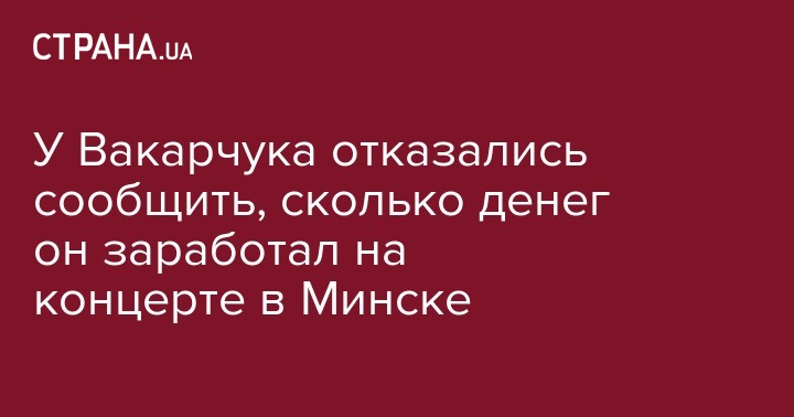 У Вакарчука отказались сообщить, сколько денег он заработал на концерте в Минске