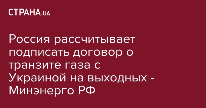 Российское Министерство энергетики на ближайших выходных намерено подписать договор с Украиной о транзите газа. Об этом заявил министр энергетики РФ Александр Новак в интервью РБК