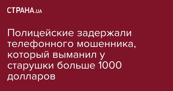 Полицейские задержали телефонного мошенника, который выманил у старушки больше 1000 долларов