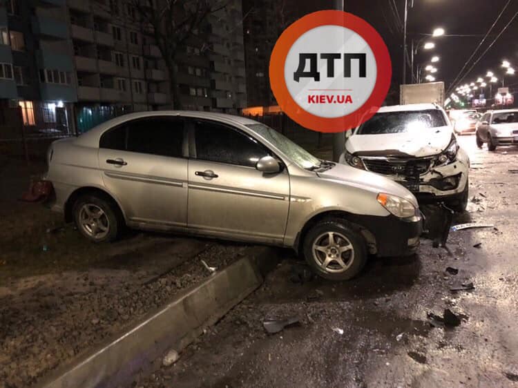 Пьяный дрифт на Троещине закончился столкновением с припаркованными авто. Фото