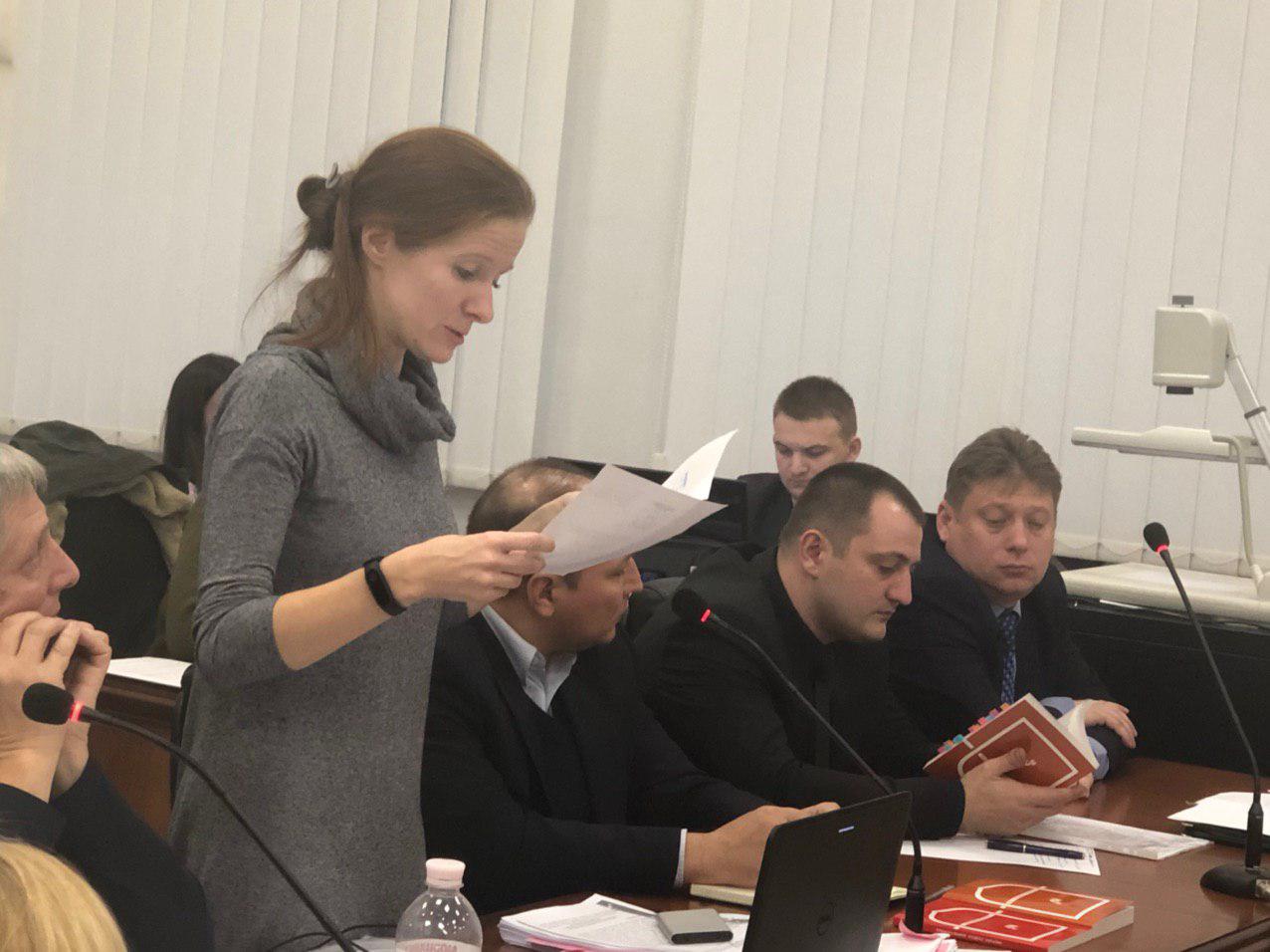 17:47 Закончили выступать потерпевшие. Последняя с Хмельницкой области очень долго выступала, в конце сказала "Слава Украине". В зале ей ответили "Героям Слава" и захлопали.