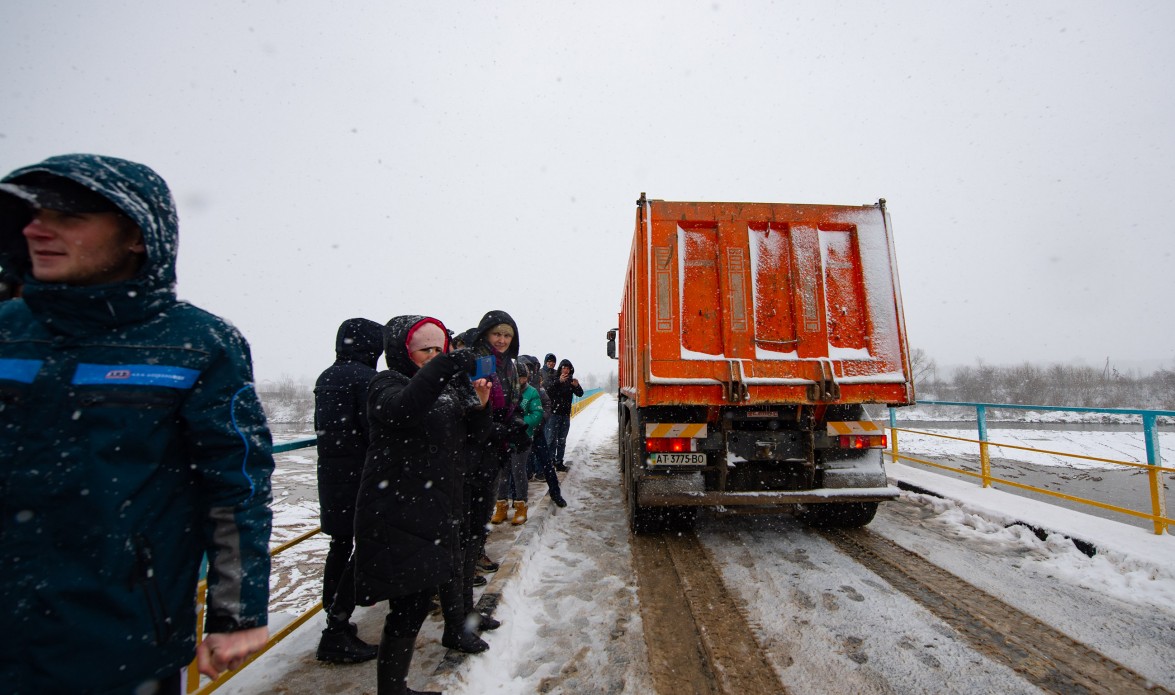 Президент вместе с председателем Ивано-Франковской областной государственной администрации Денисом Шмигалем прошлись по восстановленному мосту.