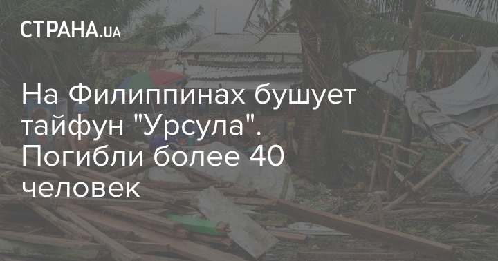 Тайфун "Урсула" на Филиппинах унес жизни 41 человека. Об этом информирует издание CNN Philippines. Сообщается, что еще 28 человек получили ранения, 12 человек числятся пропавшими без вести.