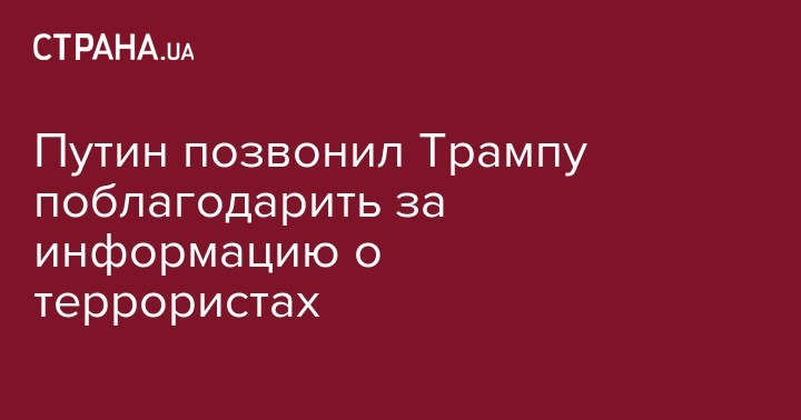 Президент России Владимир Путин поговорил по телефону с американским лидером Дональдом Трампом, которого поблагодарил за информацию, которая помогла предотвратить теракты. Об этом сообщают "Вести".