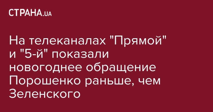 На телеканале Прямой, который связывают с Петром Порошенко, показали его новогоднее выступление вместо обращения президента Украины Владимира Зеленского и только после него - официальное обращение действующего главы государства.