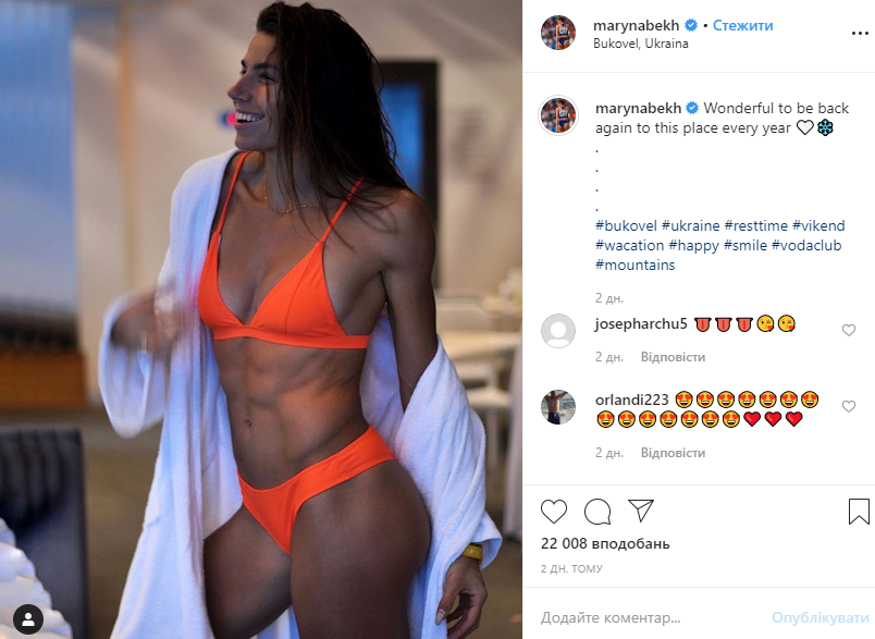 Настоящий фурор в социальных сетях вызвала знаменитая украинская легкоатлетка Марина Бех-Романчук после того, как на своей странице в Instagram она опубликовала видео, сделанное во время отдыха в Буковеле.