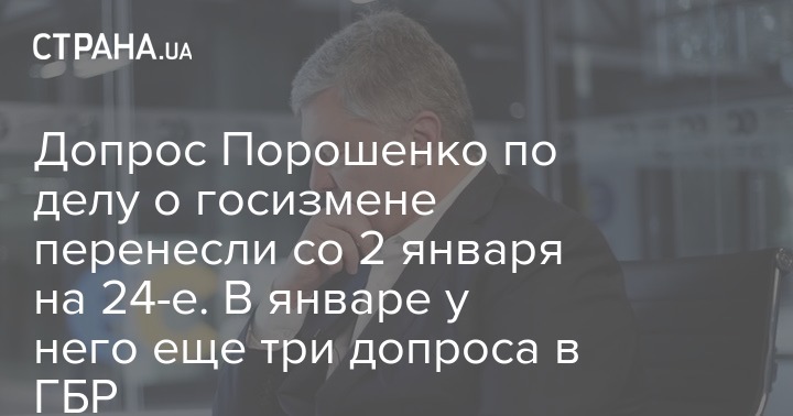 Допрос Порошенко по делу о госизмене перенесли со 2 января на 24-е. В январе у него еще три допроса в ГБР