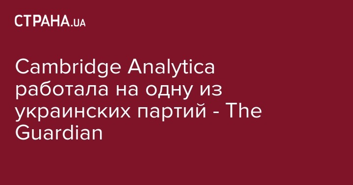 Британская кампания Cambridge Analytica, которую обвинили в незаконном сборе персональных данных из профилей социальных сетей Facebook, работала в 2017 году с одной из украинских политических партий.