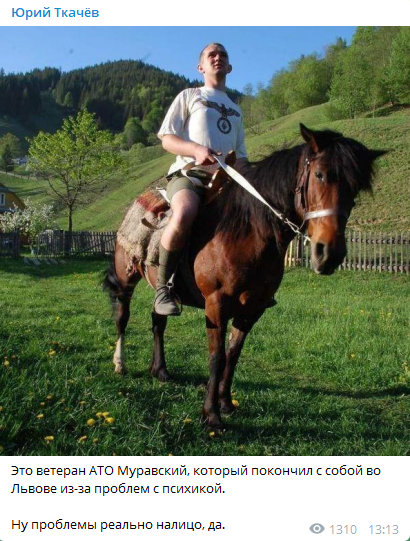 Тем временем в сети обратили внимание, что при жизни Муравский фотографировался в футболке с символикой Третьего Рейха. В частности, такой снимок разместил журналист Юрий Ткачев.