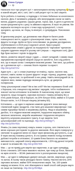 Бывшая и.о. министра здравоохранения Уляна Супрун опубликовала на своей странице в Facebook пост о рождественской кутье. Она рассказала, что с точки зрения нутрициологии (наука о гигиене питания, - Ред.) кутья, как и борщ и винегрет, является суперфудом, то есть очень полезным продуктом.