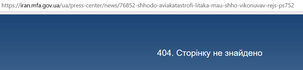 10:46 Посольство Украины в Иране убрало со своего сайта новость, в которой говорится, что ни теракт, ни ракета не виноваты в падении самолета.