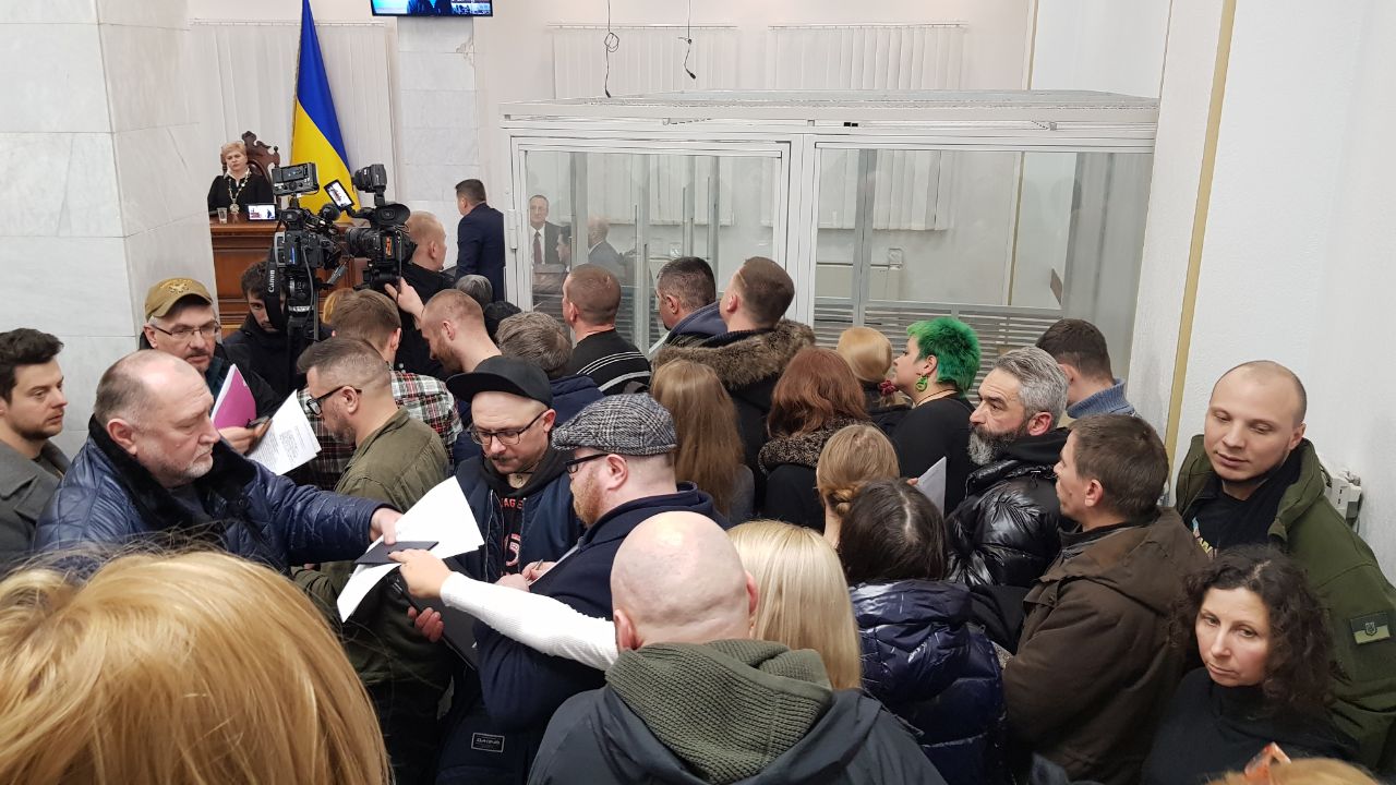 14:20 На суде порядок обеспечивают нацгвардецы, под зданием суда дежурит несколько автобусов, в самом суде проходит тщательный досмотр.